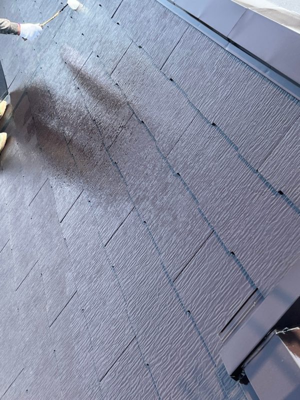 屋根材に塗料を塗布して屋根の基礎部分である下地を守ります。